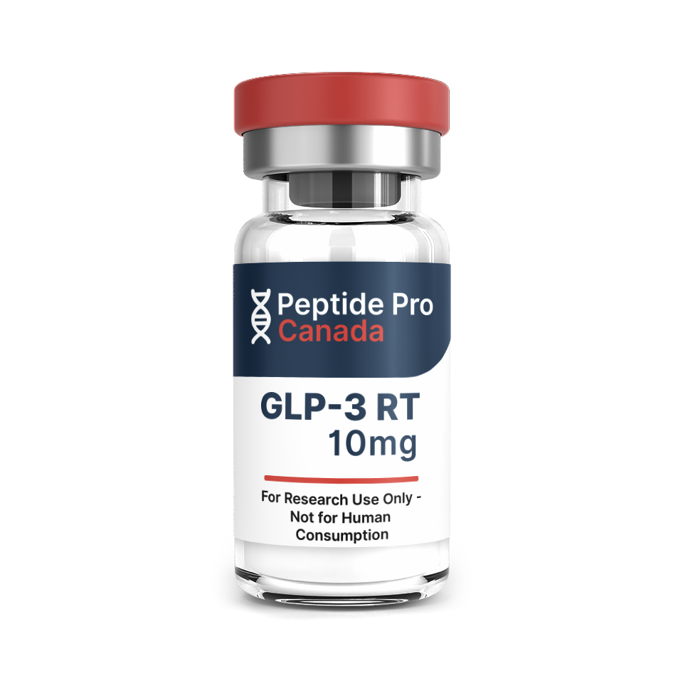 Retatrutide Canada is supplied as a 10mg lyophilized research peptide in a sterile 3mL vial. Ships from Ontario. For laboratory use only — not for human use.